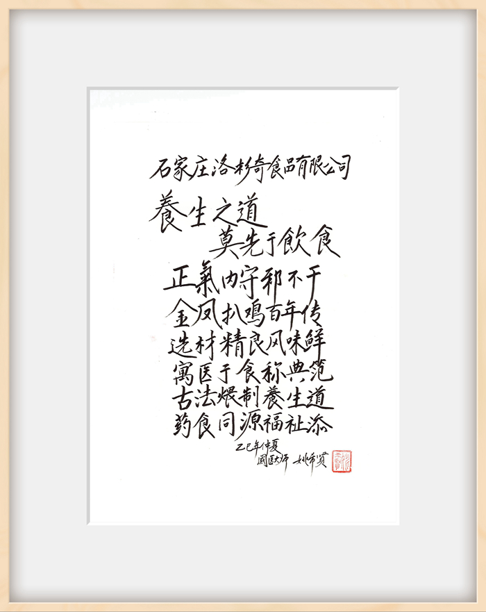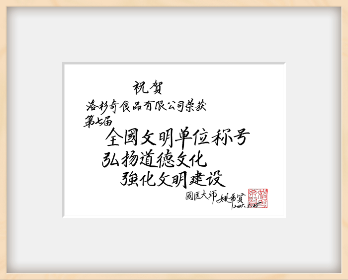 近日,國醫(yī)大師、中國中醫(yī)科學院學部委員姚希賢先生欣聞公司榮獲“全國文明單位”榮譽稱號,欣然題寫“弘揚道德文化、強化文明建設”、“尚德守信、創(chuàng)新發(fā)展”等寄語,殷切期望公司繼續(xù)秉承“用匠心、做匠人、鑄匠品”工匠精神,做放心、健康食品,把百年老字號金鳳扒雞這一傳統(tǒng)美食發(fā)揚光大。